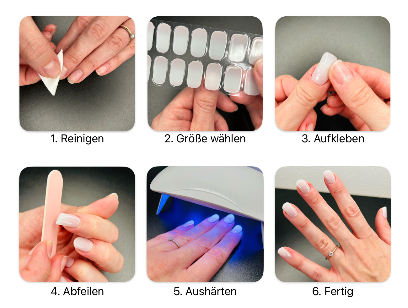 Sollten nach der Entfernung noch Rückstände der Klebeschicht auf deinem Nagel bleiben, tränke ein Wattepad mit acetonfreiem Nagellackentferner und wische die Rückstände sanft ab. Dadurch wird der Nagel gründlich gereinigt, ohne ihn zu schädigen.