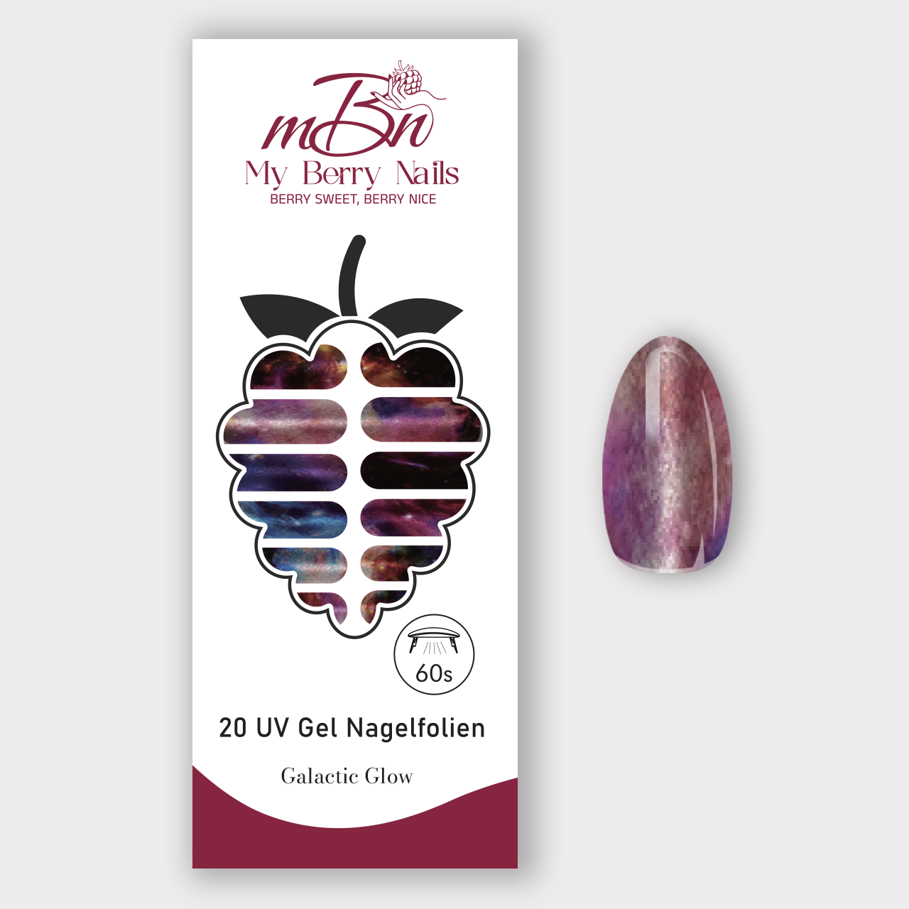 Galactic Glow entfaltet mit seinem tiefen, galaktischen Farbton und schimmernden Partikeln einen faszinierenden, fast magischen Effekt. Diese UV-Nagelfolie lässt deine Nägel wie kleine Sternenhimmel leuchten und bringt einen Hauch von Mystik und Extravaganz in deinen Look.