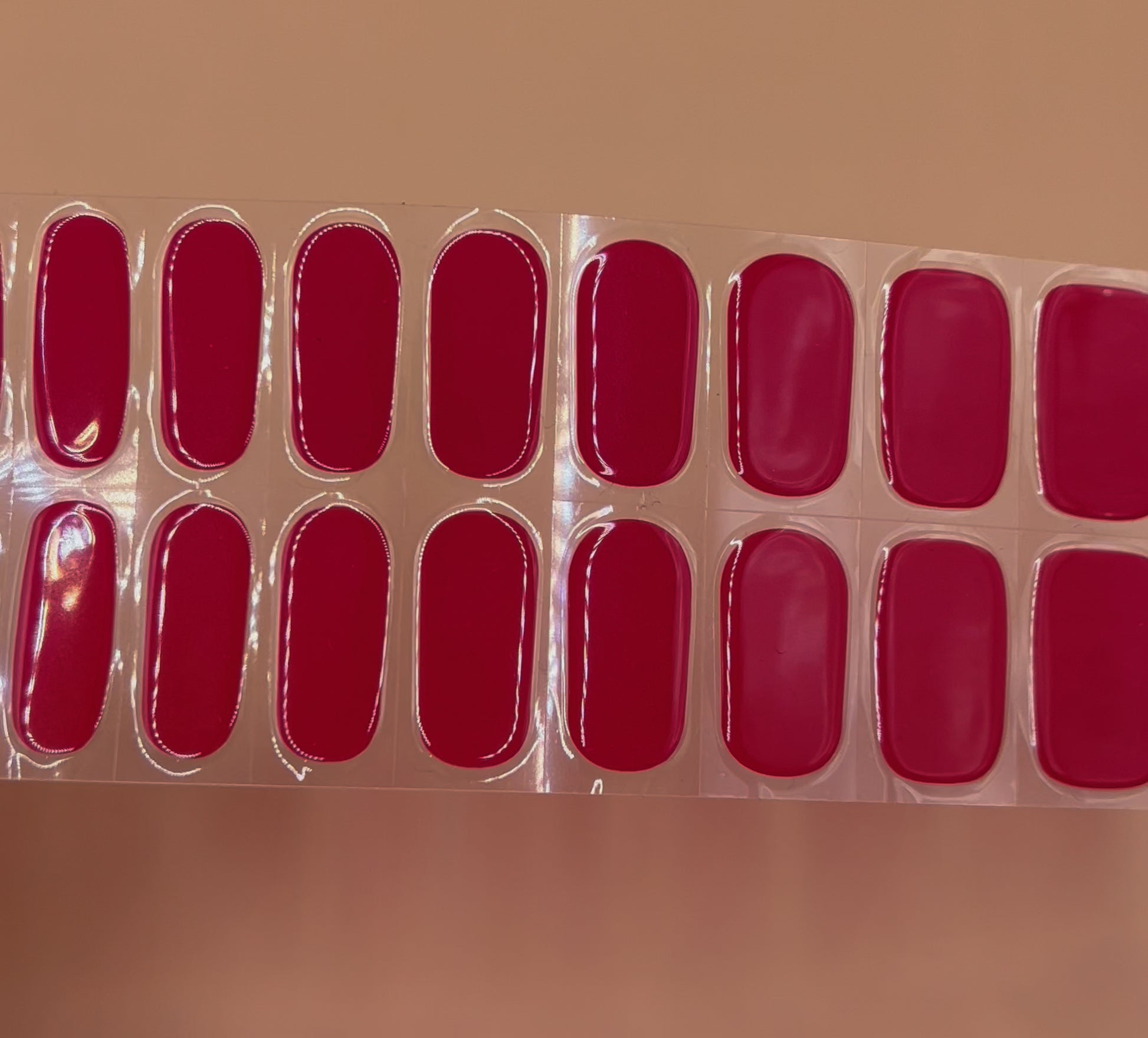 Als semi-transparente Nagelfolie ist Maraschino Cherry ein lebendiges, leuchtendes Rot-Pink, das zart durchscheinend wirkt. Es verleiht den Nägeln einen frischen, natürlichen Glanz, ideal für einen stilvollen Look.
