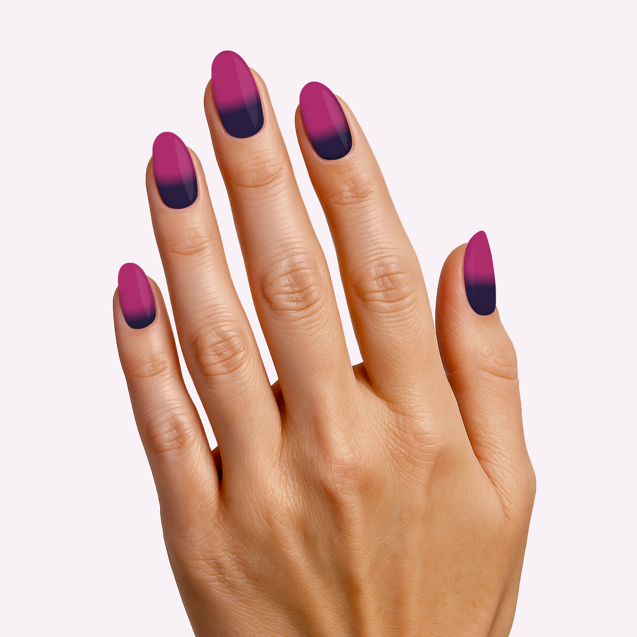 Mystic Berry verbindet Tiefe und Leuchtkraft: an der Basis dunkles Lila, das sich nach oben hin zu strahlendem Beerenrosa aufhellt. Der fließende Verlauf wirkt geheimnisvoll, modern und elegant – ein Blickfang mit stilvoller Raffinesse.