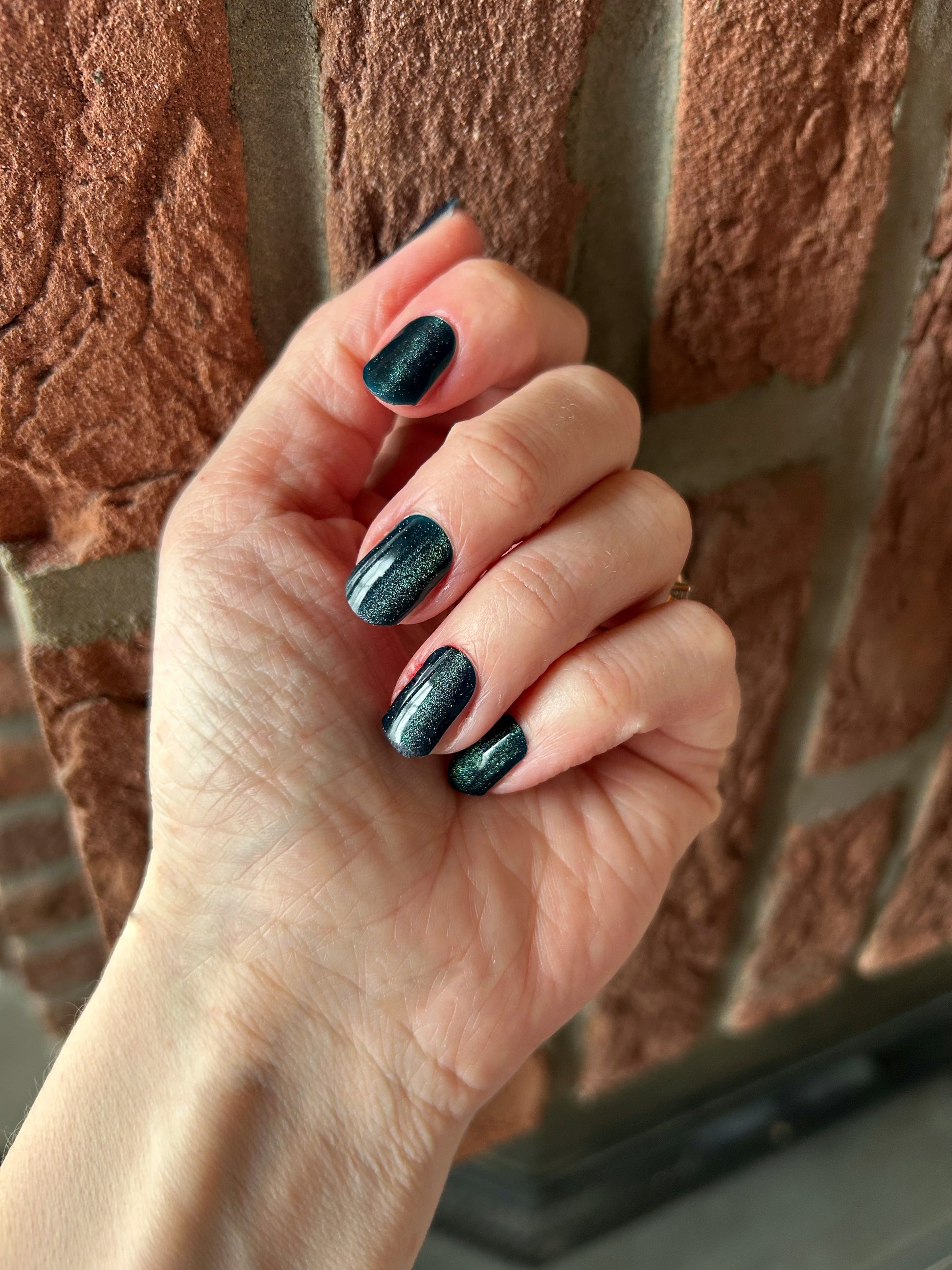 Ein faszinierender, dunkler Farbton, der eine Mischung aus Grün und Blau darstellt. Ein sanfter Schimmer durchzieht diese Folie und erinnert an einen nächtlichen Polarhimmel. Perfekt für eine mystische und magische Ausstrahlung deiner Nägel.