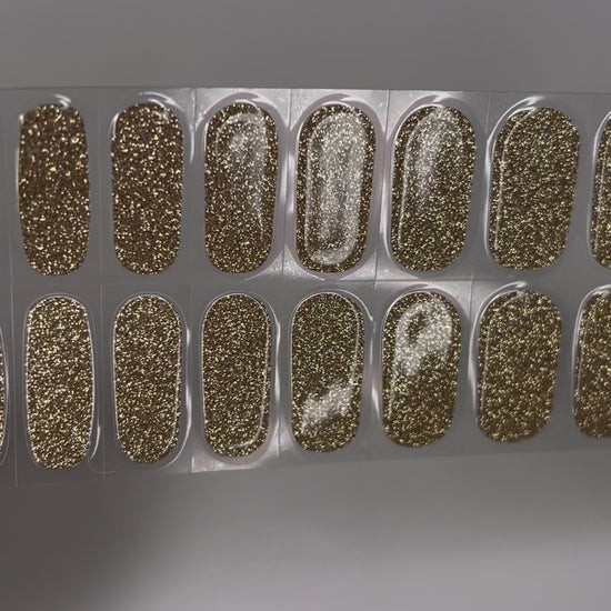 Ein schimmerndes, semi-transparentes Gold mit funkelnden Glitzerpartikeln für deine Nägel. Sparkly Gold strahlt Glamour und Eleganz aus -perfekt für festliche Anlässe oder als extravaganten Akzent.